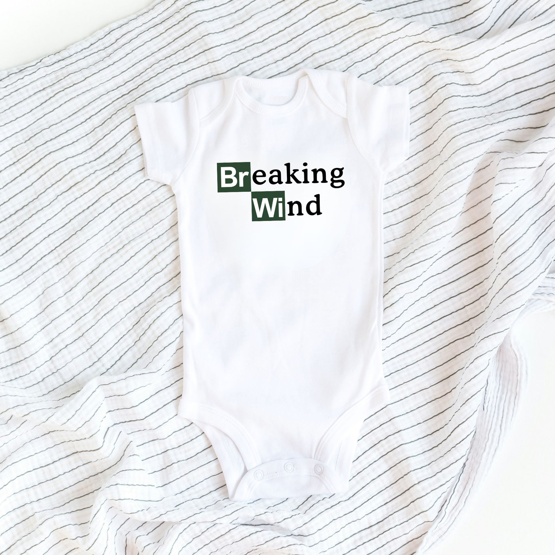 Introducing our "Breaking Wind" baby grow, inspired by the iconic show Breaking Bad! This hilarious onesie features a playful twist on the classic logo, perfect for little ones with a sense of humor. Made from soft, breathable cotton, it ensures your baby stays comfy while showcasing their quirky style. Whether it’s for a baby shower gift or your own little bundle of joy, this funny outfit is sure to spark smiles and laughter. Get ready to embrace the cute chaos of parenthood with a side of wit!